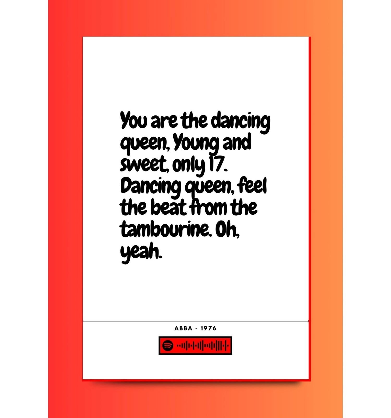 📱 Optional Spotify barcode – scan in the Spotify app in featured prints to instantly play your chosen song.