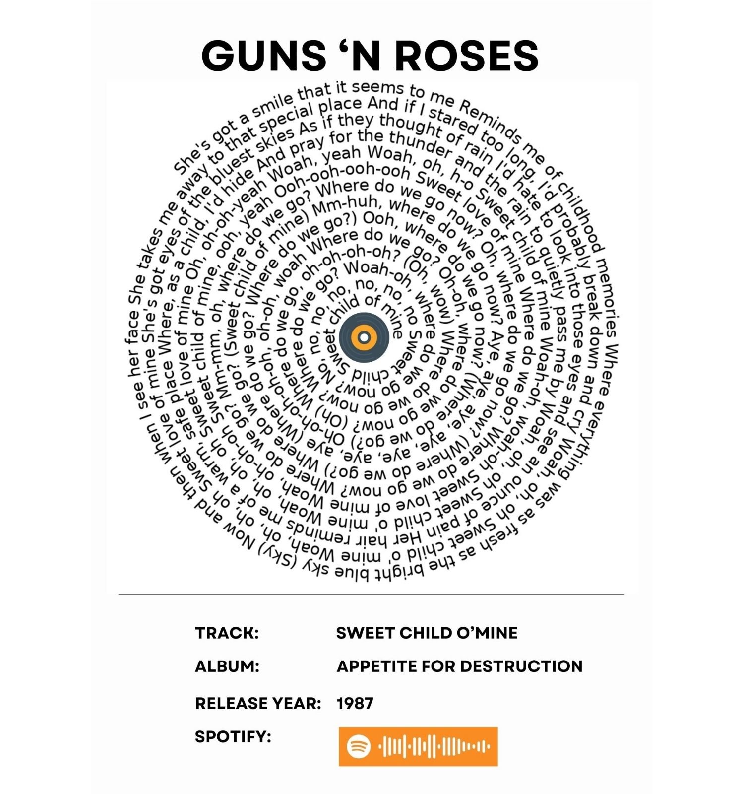 Guns ‘n Roses – Sweet child o’mine – music wall art print.