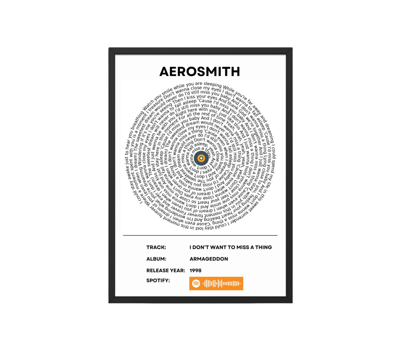Aerosmith – I Dont Want to Miss a Thing – “Track” – music wall art print.