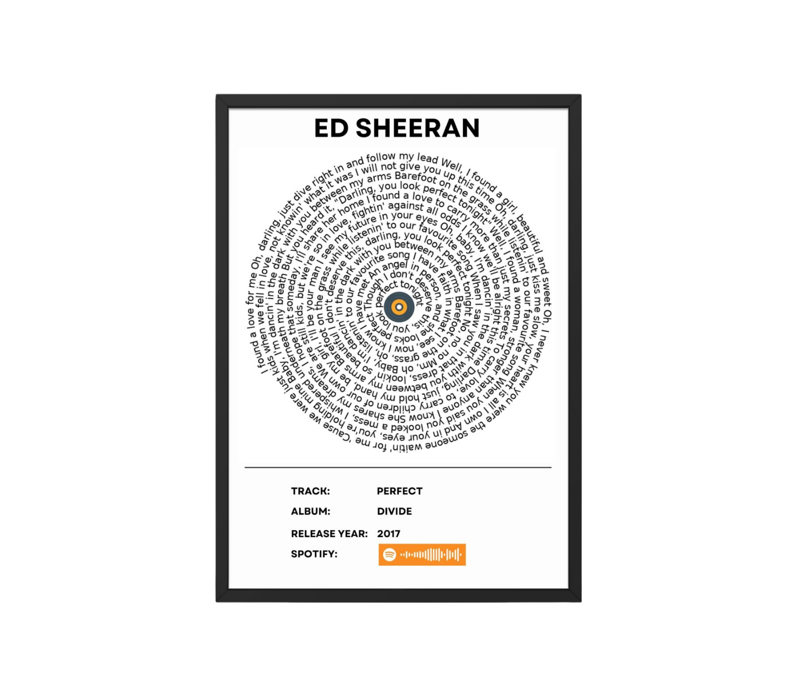 Ed Sheeran – Perfect – “Track” – music wall art print.