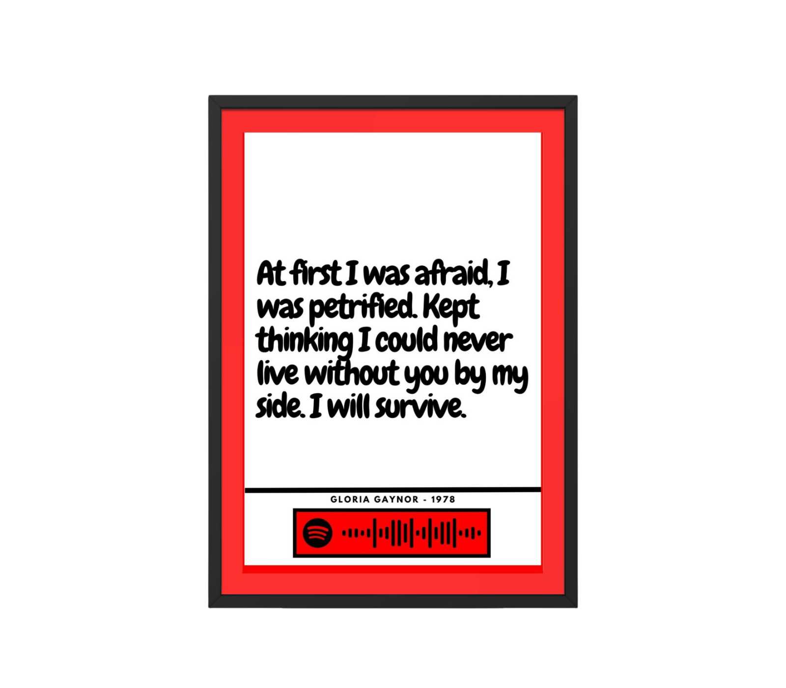 Optional Spotify barcode – scan in the Spotify app in featured prints to instantly play your chosen song.