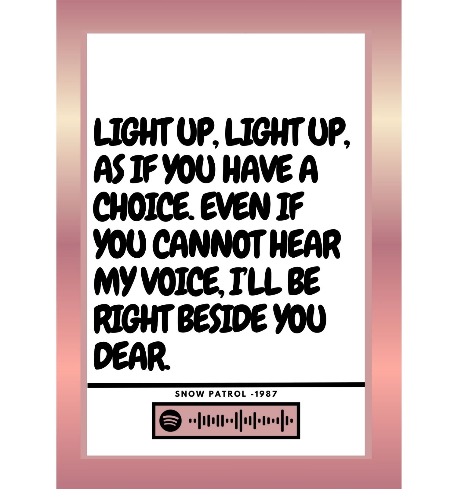 📱 Optional Spotify barcode – scan in the Spotify app in featured prints to instantly play your chosen song.